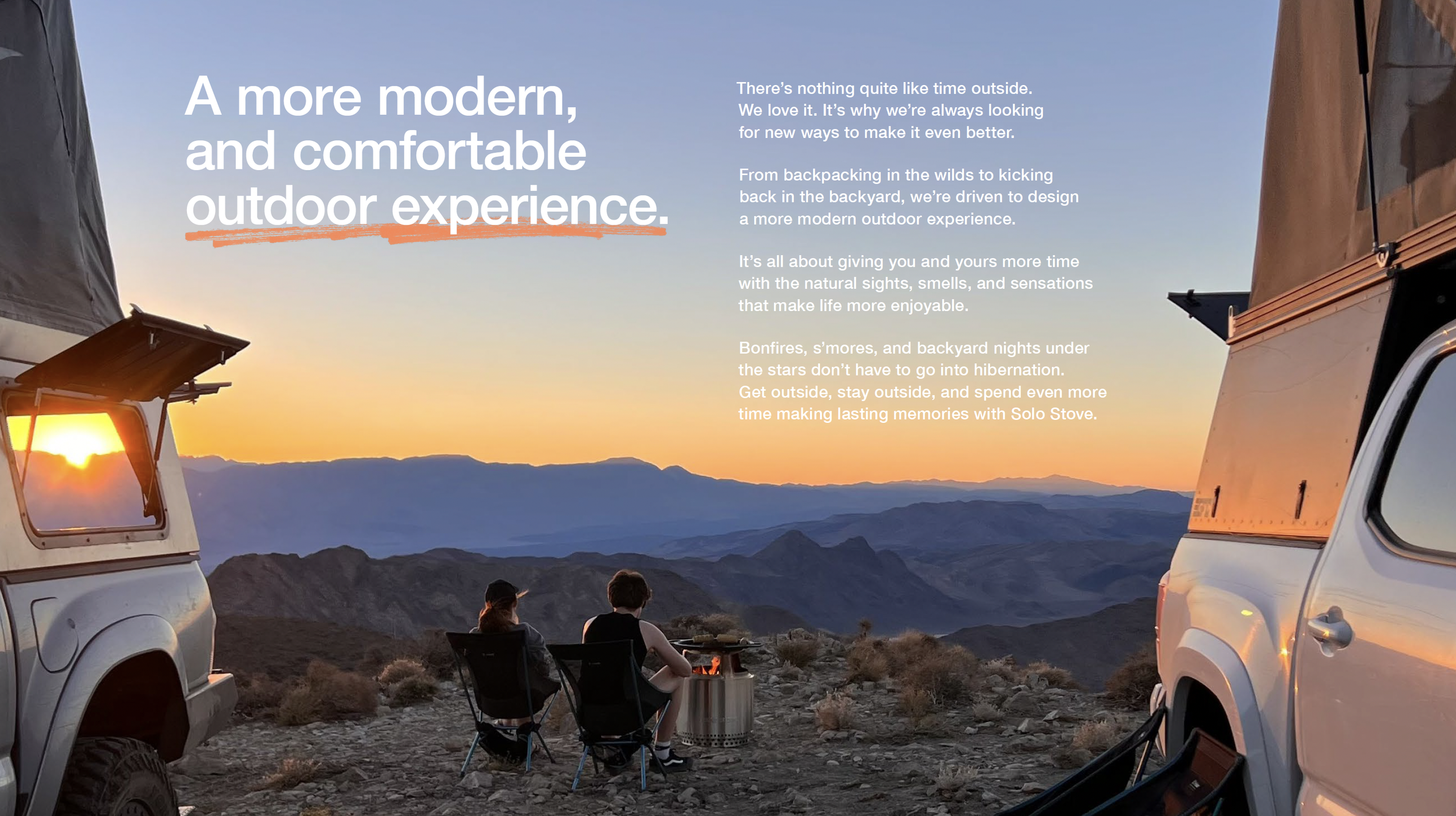 A new framework that allows us to message Solo Stove as a brand on a mission, guiding customers on an incredible journey. Once we unlocked this, everything clicked into place. Font, color, texture, imagery, now every visual aspect of the brand works cohesively to tell a story.